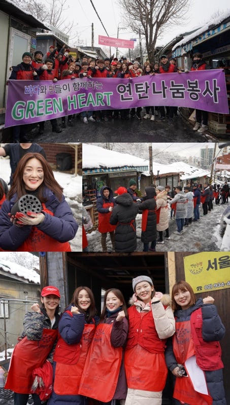 바다는 지난 24일 오전 서울 노원구 중계지역 마을에서 30여명의 팬들과 함께 그린하트 연탄나눔봉사를 펼치면서 훈훈한 온정을 나눴다.