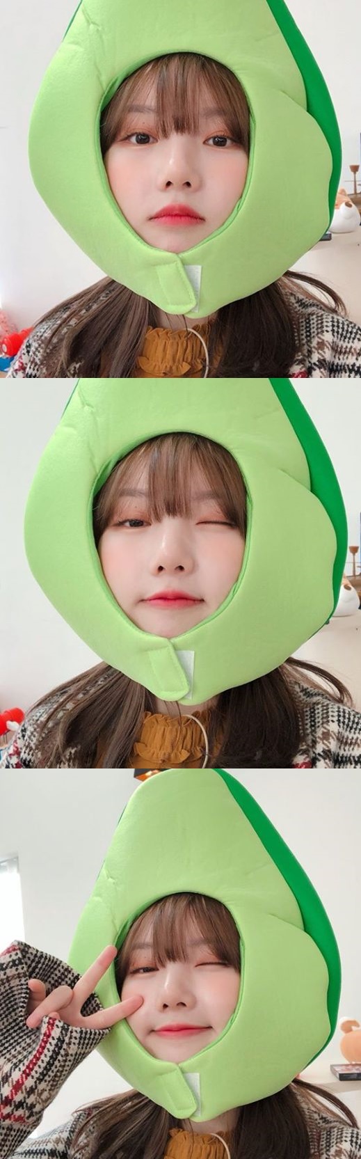 걸그룹 여자친구 멤버 예린이 아보카도 탈을 쓰고 귀여운 사진을 공개했다.