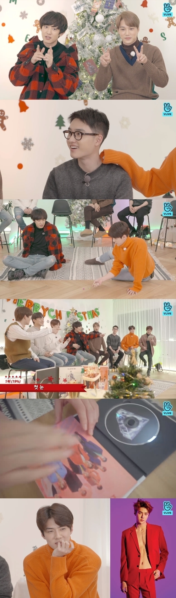 12일 오후 포털사이트 네이버 V라이브를 통해 '한겨울 밤 #들려줄게 EXO'가 방송됐다. 이날 그룹 엑소 멤버들이 출연해 신곡 'LOVE SHOT' 스포일러 및 앨범 제작 비하인드 에피소드 등 다양한 이야기를 나눴다.