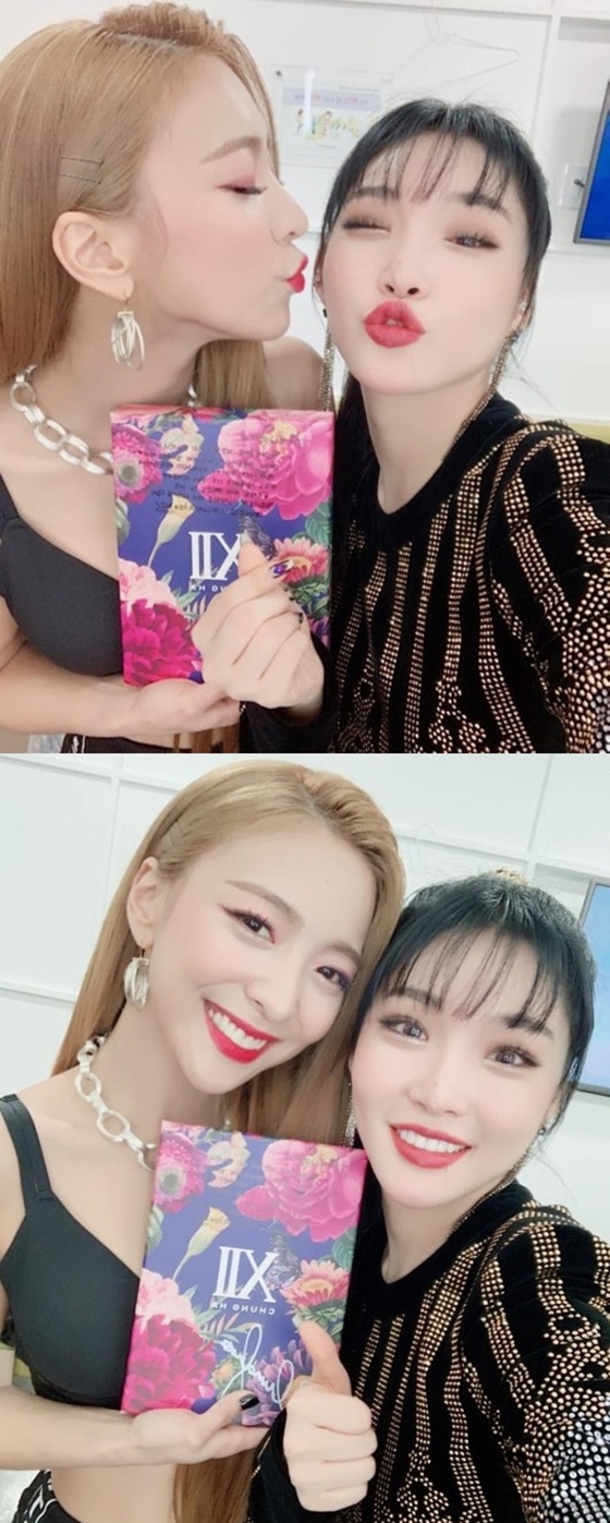 가수 청하가 걸그룹 f(x) 멤버 루나의 솔로 신곡을 홍보했다.