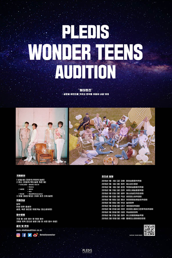 플레디스 엔터테인먼트는 지난 1월 4일 강릉을 시작으로 전국 오디션 'PLEDIS WONDER TEENS AUDITION(플레디스 원더틴즈 오디션)'을 전격 개최한데 이어 춘천, 전주, 광주, 부산, 대구 등 총 13개 지역에서 오디션을 확정 지으며 본격적인 10대 보이 스타 발굴에 나섰다.