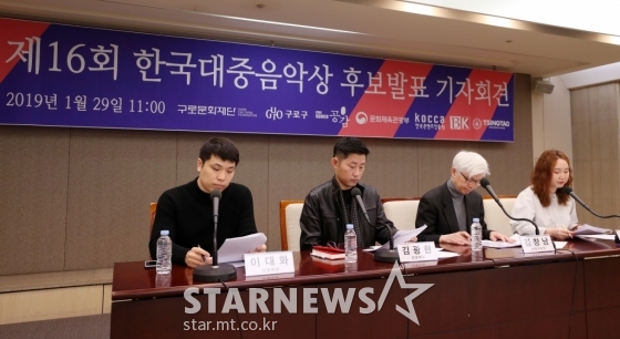 제16회 한국대중음악상 시상식 기자회견이 29일 오전 11시 서울 광화문 프레스센터에서 열렸다. 이날 기자회견에는 김창남 선정위원장을 비롯해 김광현, 박희아, 이대화 선정위원 등 총 4명이 참석했다.