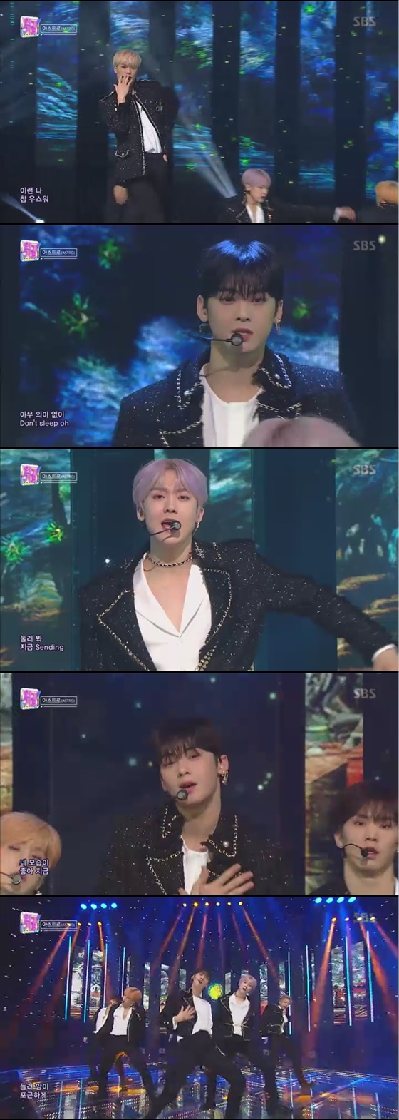3일 오후 방송된 SBS 음악 순위 프로그램 '인기가요'에서는 아스트로의 굿바이 무대가 그려졌다.