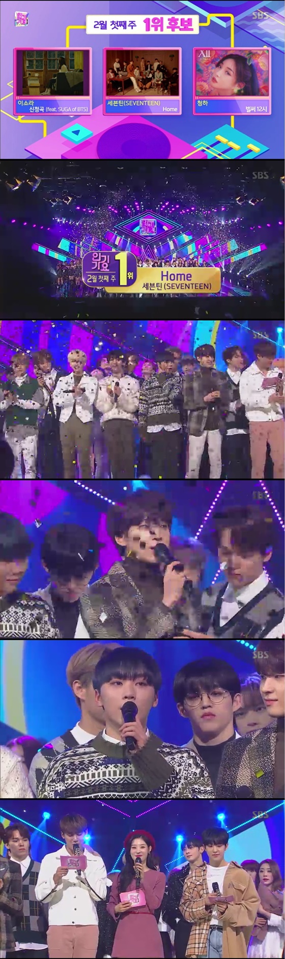 3일 오후 방송된 SBS 음악 순위 프로그램 '인기가요'에서는 세븐틴이 1위에 오르는 모습이 그려졌다.