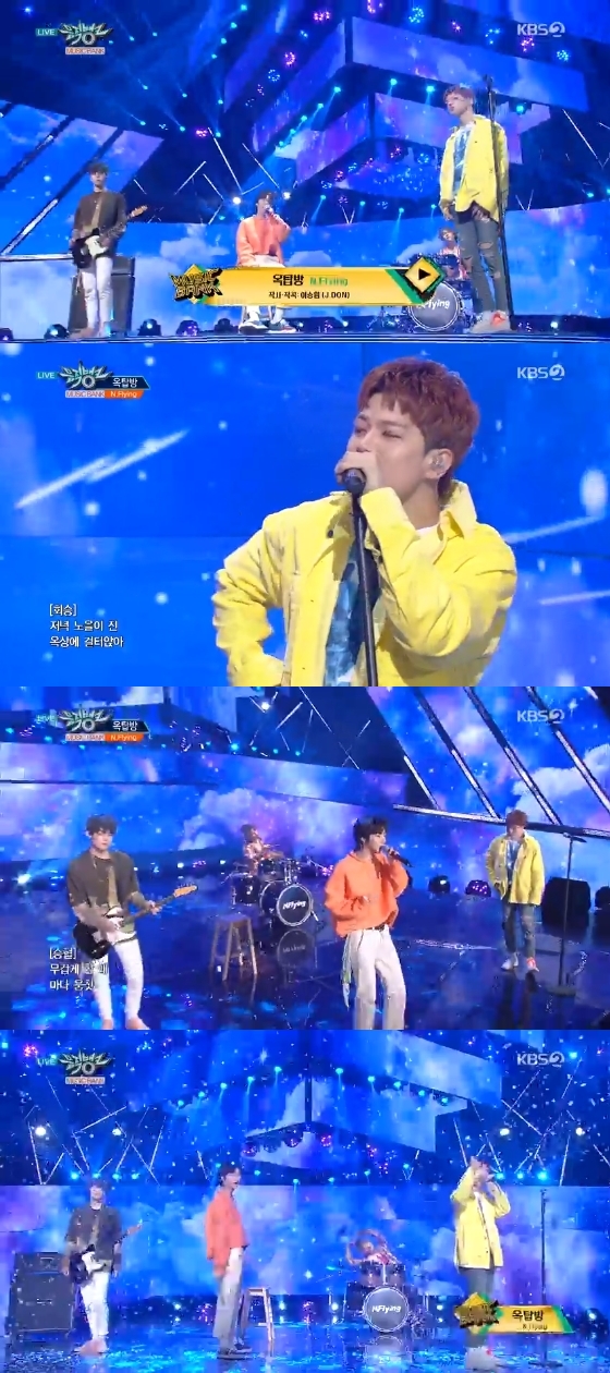 8일 오후 방송된 KBS 2TV 음악 순위 프로그램 '뮤직뱅크'에서 밴드 그룹 엔플라잉이 '옥탑방'으로 아련한 분위기를 전했다.