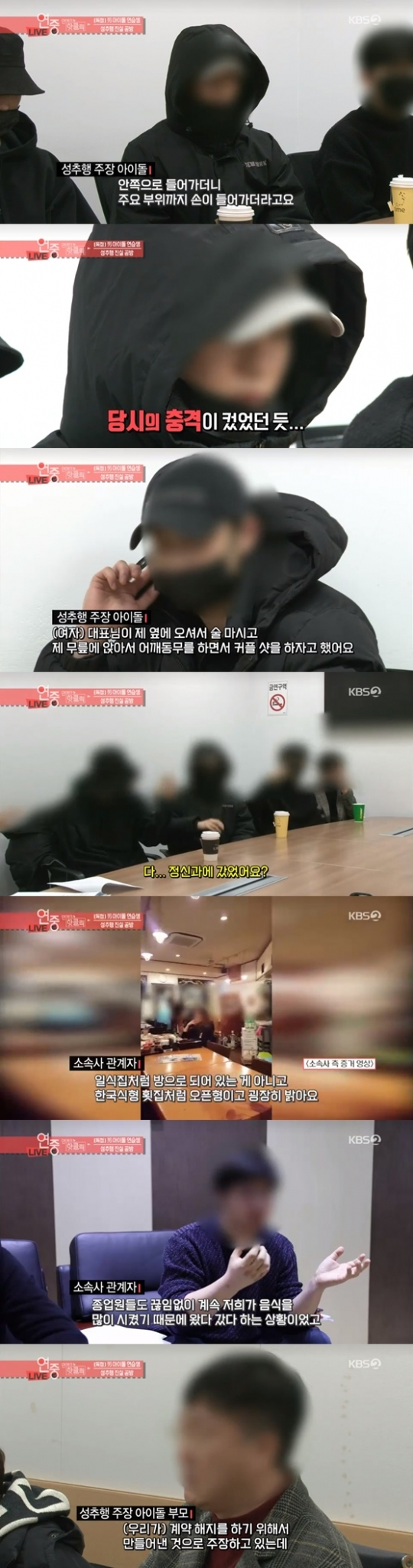 8일 오후 방송된 KBS 2TV '연예가중계'에서는 남자 아이돌 연습생의 성추행 진실공방에 대해 다뤘다.