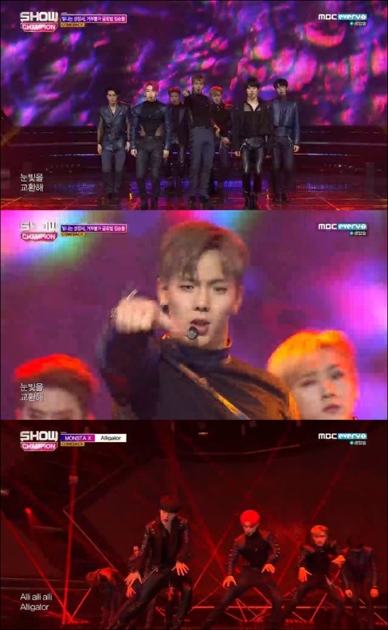 27일 오후 방송된 MBC 에브리원 '쇼 챔피언'에서 몬스타엑스가 곡 'Alligator' 무대를 선보였다.