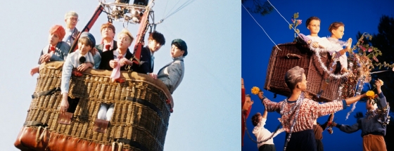 실제 '영 포에버' 낮 버전 앨범에는 방탄소년단 멤버들이 대형 애드벌룬에 탑승한 채 어딘가를 바라보고 있는 대형 포스터가 담겨 있다. 또한 주요 컷에는 애드벌룬에 입혀진 밝은 색상이 강조돼 있다. 여기에 앨범 CD와 함께 담긴 사진집에는 멤버들이 완성되지 않은 애드벌룬과 함께 여러 포즈를 취하고 있거나 벌판을 배경으로 포즈를 취했다.