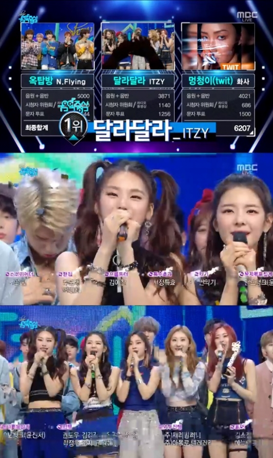 9일 오후 방송된 MBC 가요 순위 프로그램 '쇼! 음악중심'(이하 '음악중심')에서는 엔플라잉 '옥탑방', ITZY '달라달라', 화사 '멍청이'가 1위 후보에 오른 가운데 ITZY가 1위에 등극했다.