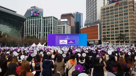 이날 이른 아침부터 서울광장 일대는 'RUN ARMY in ACTION'에 참여하기 위해 기대에 부푼 수많은 팬들로 가득했다. 행사장 주변에 모여 방탄소년단의 노래를 함께 부르거나 같이 모여 사진을 찍는 등 팬들은 행사 시작 전부터 하나가 돼 분위기를 한껏 고조시켰다.