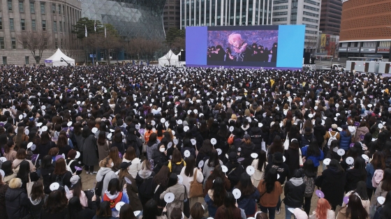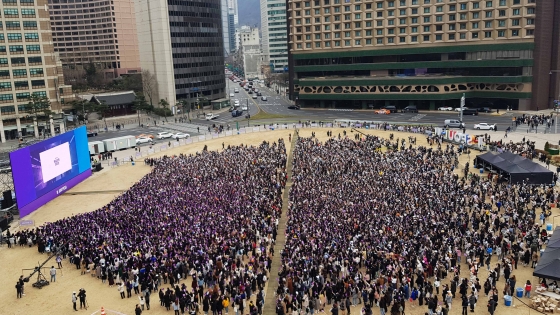 방탄소년단은 10일 오후 3시 서울광장에서 ‘RUN ARMY in ACTION’을 열고 공식 팬클럽 아미(ARMY) 1만 명과 함께 지난 활동 기록을 추억하고 함께 즐기는 행사를 개최했다.