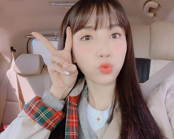 사진 속 지숙은 차 안에서 손으로 V자 표시를 한 채 환한 미소를 지으며 카메라를 응시하고 있다.