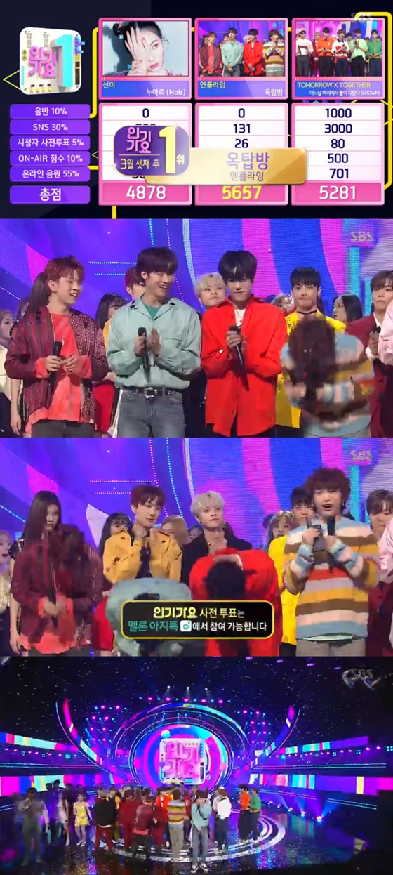 그룹 엔플라잉이 '옥탑방'으로 '인기가요'에서 1위를 차지했다.