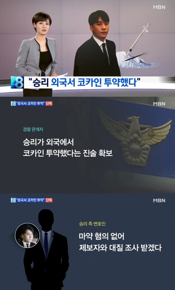 20일 오후 방송된 종합편성채널 MBN '뉴스 8'에서는 승리가 외국에서 코카인을 투약했다는 내용을 보도했다.