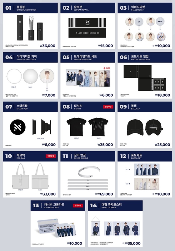 뉴이스트 측은 응원봉, 슬로건, 교통카드를 비롯해 총 14종의 MD를 준비했다.