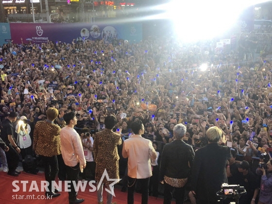 슈퍼주니어와 청하는 29일(이하 현지 시각) 오후 5시 30분부터 베트남 호찌민 호아빈 시어터에서 진행된 베트남 차트 프로그램 'V 하트비트 라이브'(V HEARTBEAT LIVE) 레드카펫 무대에 섰다. 슈퍼주니어와 청하는 이번 'V 하트비트 라이브'에서 3월 대표 한국 가수로 무대에 오른다.