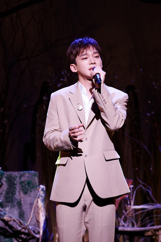 첸은 1일 오후 3시 서울 강남구 삼성동 코엑스아티움에서 첫 솔로 앨범 '사월, 그리고 꽃 (April, and a flower)' 발매 기념 음감회를 개최하고 신곡 무대를 선보였다.