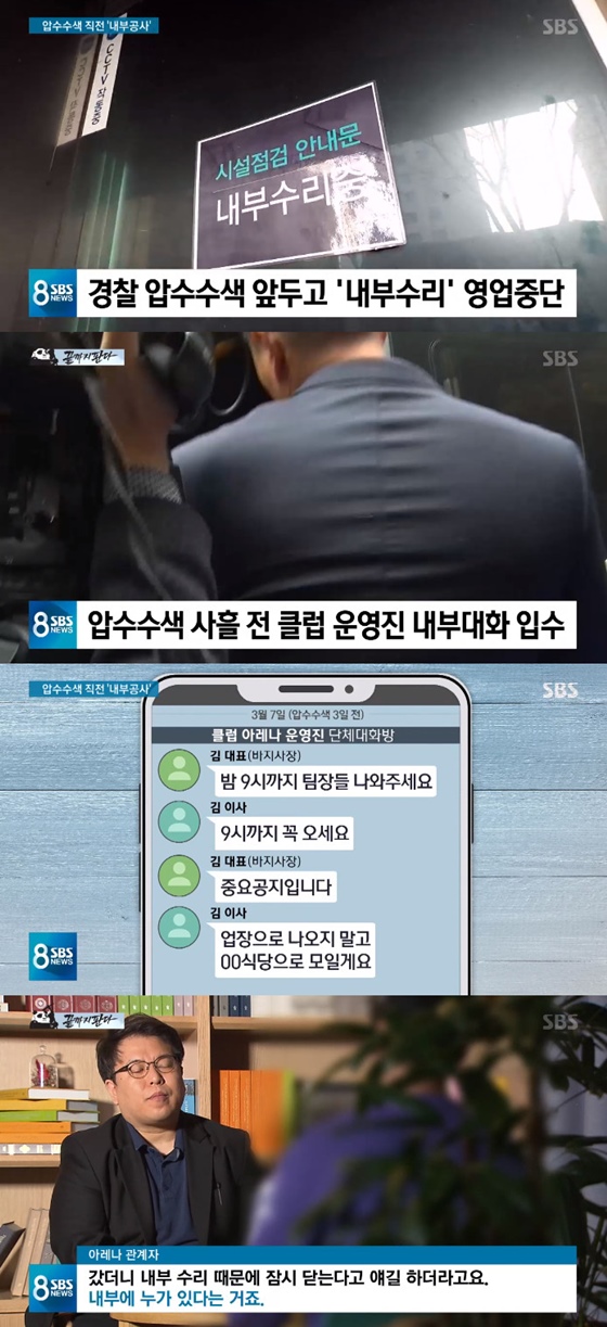 3일 오후 방송된 SBS '8뉴스'에서는 클럽 아레나가 경찰의 단속 정보를 미리 입수해 대비했다고 전했다.