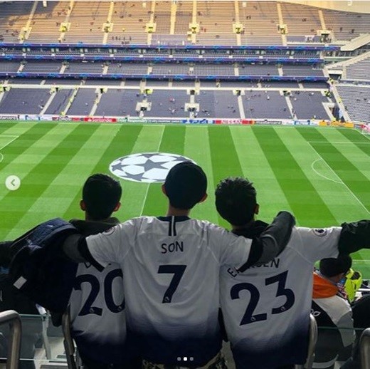 이들은 손흥민이 있는 토트넘 홋스퍼 선수들의 유니폼을 맞춰 입어 눈길을 끈다