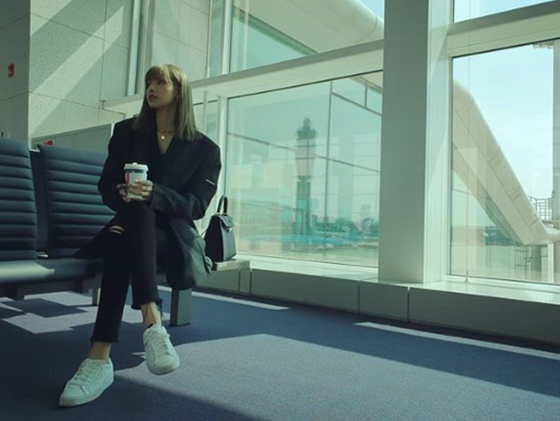 사진 속 리사는 공항에서 커피 한 잔을 들고 무언가를 응시하고 있다. 특히 리사가 도도한 분위기를 뽐내 눈길을 끈다.