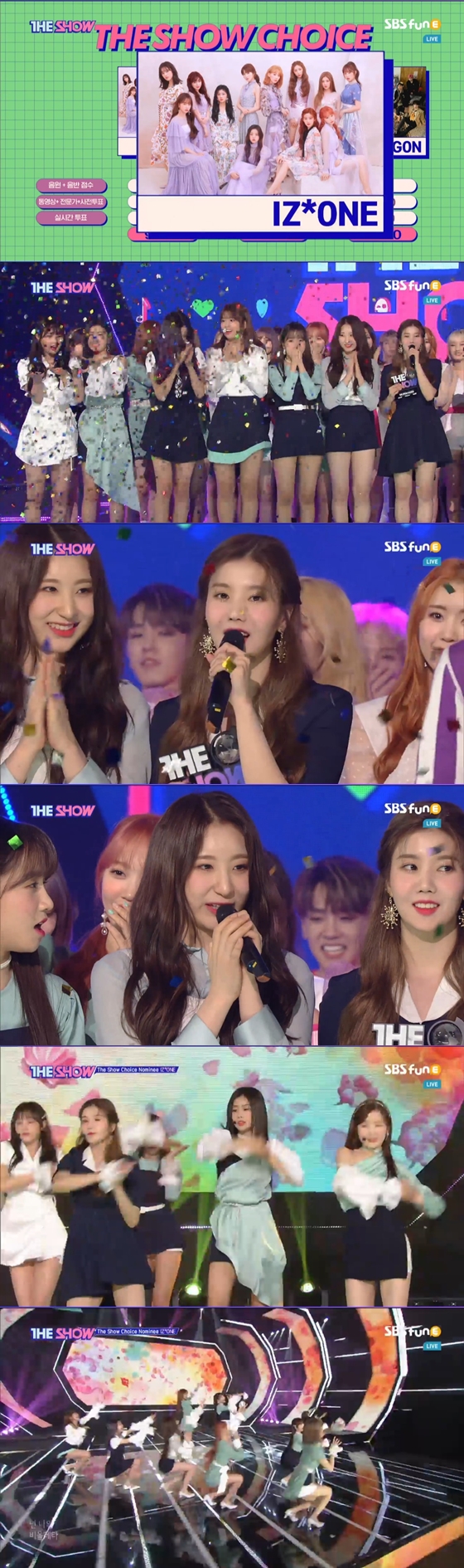 아이즈원은 "하나뿐인 위즈원 정말 사랑합니다", "지난주에 이어 2주 연속 더쇼초이스에 선정돼서 기쁘다", "위즈원 여러분들 열띤 응원과 많은 사랑 보내주셔서 감사합니다", "앞으로도 많은 관심과 사랑 부탁드린다"며 소감을 전했다.
