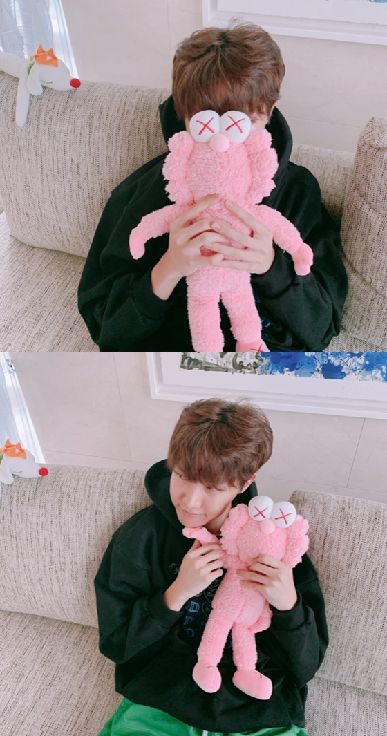 사진 속 제이홉은 인형을 들고 소년미를 뽐내고 있으며, 마치 어린아이로 돌아간 듯한 귀여움을 뽐내고 있어 눈길을 끈다.