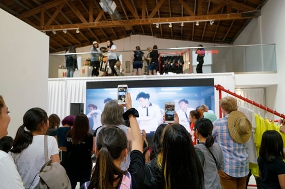 또 사진을 찍을 수 있도록 마련된 포토존과 방탄소년단의 뮤직비디오가 대형 스크린에서 상영돼 팬들이 함께 노래하고 춤을 출 수 있는 공간이 제공됐다. 올해 하반기 마텔과 컬래버레이션으로 출시되는 방탄소년단 인형도 전시돼 많은 팬들의 기대를 받고 있다.