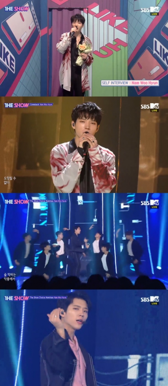 솔로로 컴백한 인피니트 남우현이 '더쇼'에서 감미로운 목소리로 관객들을 사로잡았다.