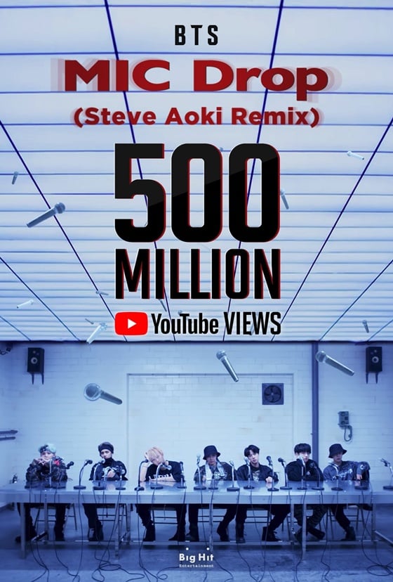 그룹 방탄소년단의 'MIC Drop' 리믹스 뮤직비디오가 5억뷰를 돌파했다.