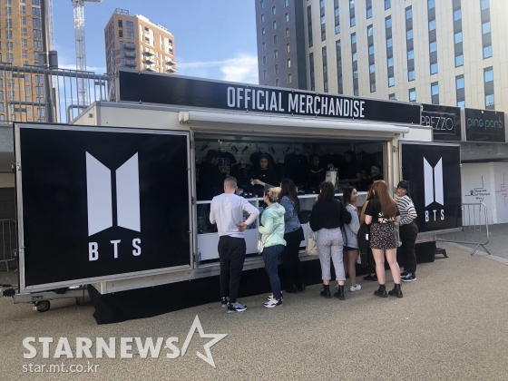 5월 31일(이하 현지 시각) 영국 런던 웸블리 스타디움에는 이미 여러 해외 아미(ARMY, 방탄소년단 팬덤)들의 모습이 눈에 띄었다. 웸블리 파크 지하철역을 나와 경기장으로 향하는 거리에는 각 멤버들의 모습이 담긴 대형 현수막도 걸려 있었고 콘서트 타이틀인 'LOVE YOURSELF'의 이름이 함께 기재됐다. 공연장 인근에는 BTS라는 단어가 붙은 여러 부스가 일찌감치 설치돼 있었고 '오피셜 머천다이즈'(OFFICIAL MERCHANDISE)라는 문구가 새겨진 소규모 굿즈 판매장과 팬들을 위한 넓은 공간도 마련됐다.