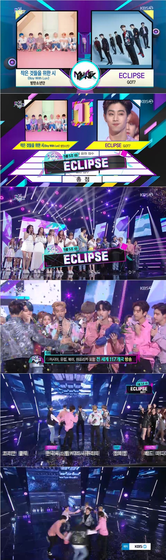 '뮤직뱅크' 갓세븐이 곡 '이클립스'로 음악방송 3관왕에 올랐다.