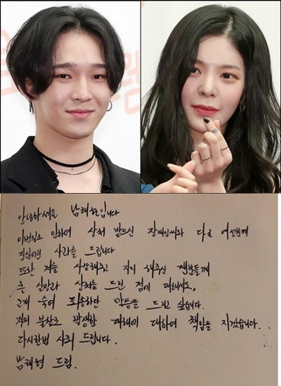 장재인이 공개 열애 중이던 가수 남태현의 양다리 연애에 대해 폭로한 가운데, 남태현이 직접 자필 사과문으로 "죄송하며 책임지겠다"라는 입장을 밝혔다.