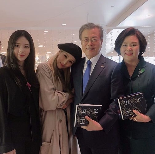 가수 자이언트핑크가 문재인 대통령과 김정숙 여사를 만났다.