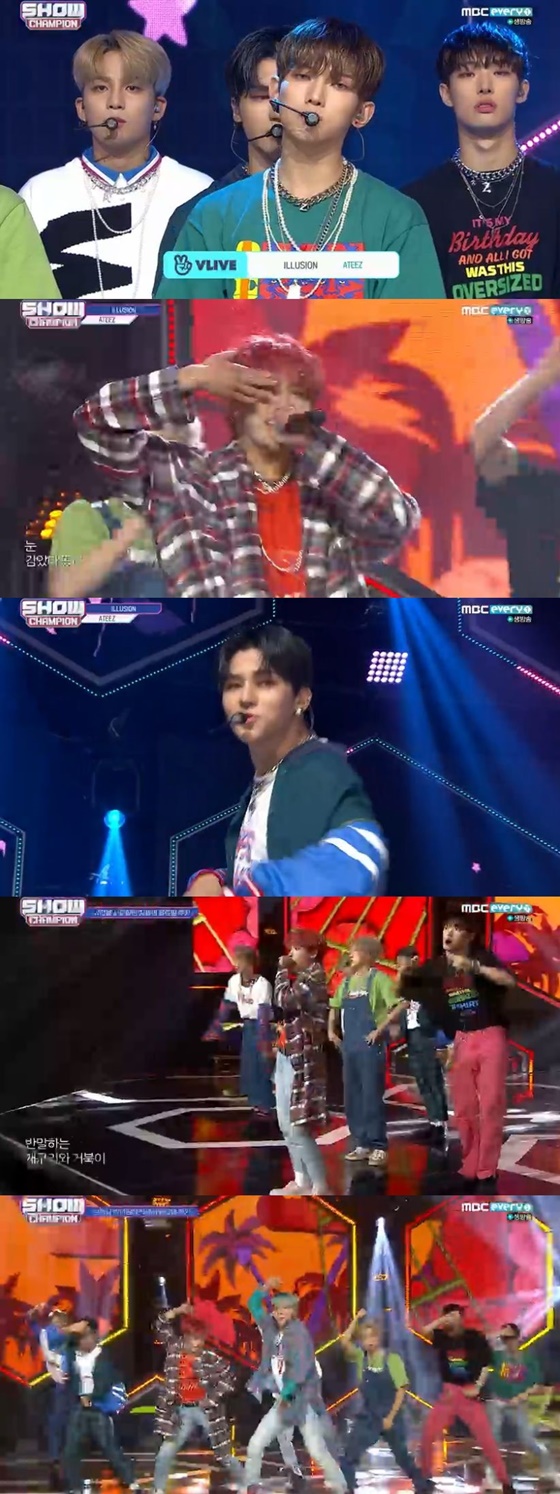 에이티즈는 26일 오후 방송된 MBC 에브리원 음악 순위 프로그램 '쇼! 챔피언'에서 앨범 TRESURE EP.3 : One To All'의 타이틀곡 'ILLUSION'의 무대를 꾸몄다.