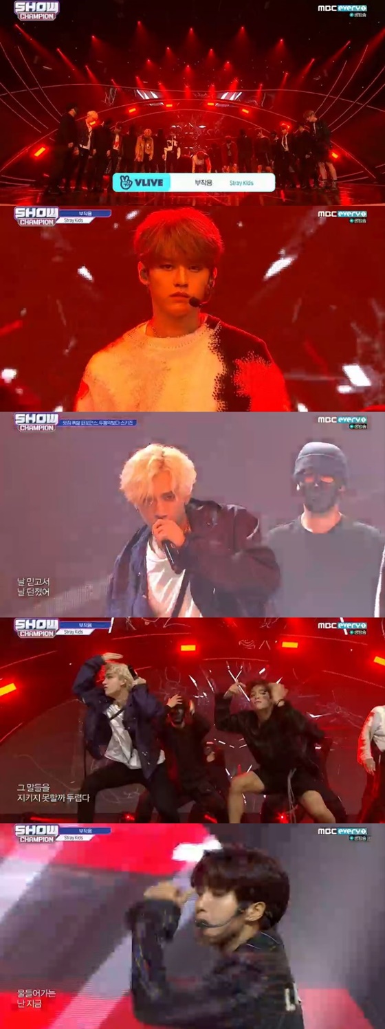3일 오후 방송된 MBC 에브리원 음악 프로그램 '쇼! 챔피언'에서는 앨범 'Cle 2 : Yellow Wood'의 타이틀곡 '부작용'의 무대를 꾸미는 스트레이키즈의 모습이 담겼다.