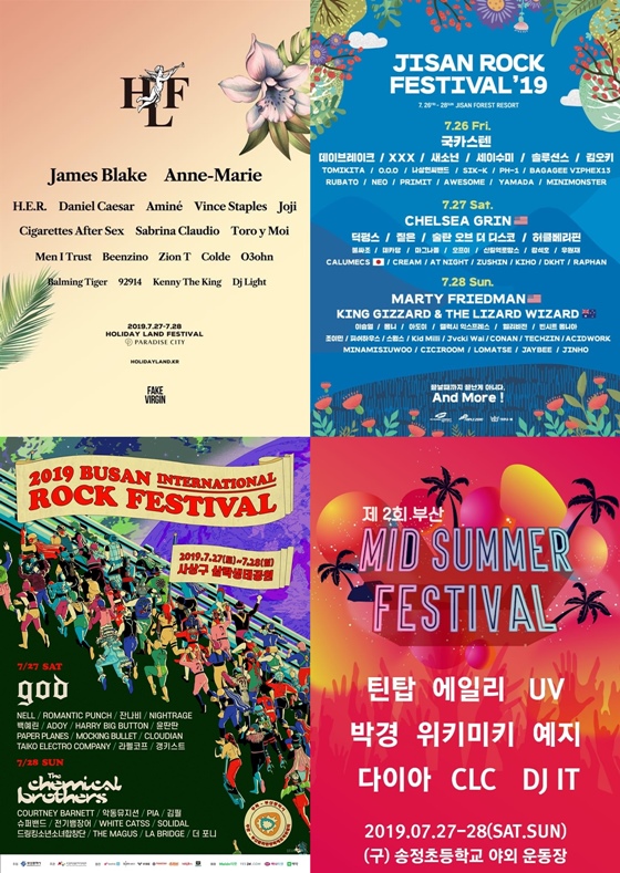 먼저 27~28일 인천 파라다이스시티에서 홀리데이랜드페스티벌은 반쪽짜리 페스티벌로 관객들의 원성을 사고 있다. 홀리데이랜드페스티벌은 공연 3일 전 미국 가수 H.E.R.의 갑작스러운 출연 취소로 잡음이 일었다. 또 공연 2일 차 10팀의 아티스트가 무대에 오르기로 예정된 가운데, 앤 마리, 다니엘 시저, 빈지노, DJ Light까지 네 팀의 무대가 취소됐다. 여기에 몇몇 아티스트는 무대가 축소되며 총 공연시간 550분의 절반에도 못 미치는 수준으로 공연이 진행됐다.