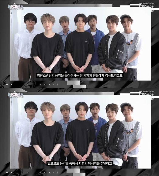 방탄소년단은 1일 오후 서울 송파구 방이동 올림픽공원 KSPO DOME에서 열린 '2019 M2 X 지니 뮤직 어워즈'(2019 M2 X GENIE MUSIC AWARDS, 이하 '2019 MGMA')에서 대상 격인 '더 톱 아티스트'(The Top Artist)와 'M2 톱 비디오'(M2 Top Video' 상을 거머쥐었다.