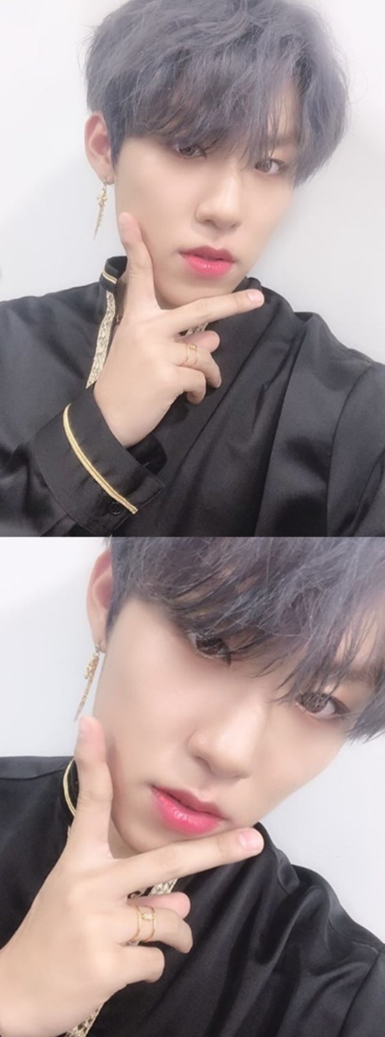 사진 속 박우진은 손으로 V자를 한 채 카메라를 응시하고 있다. 특히 박우진의 카리스마가 눈길을 끈다.