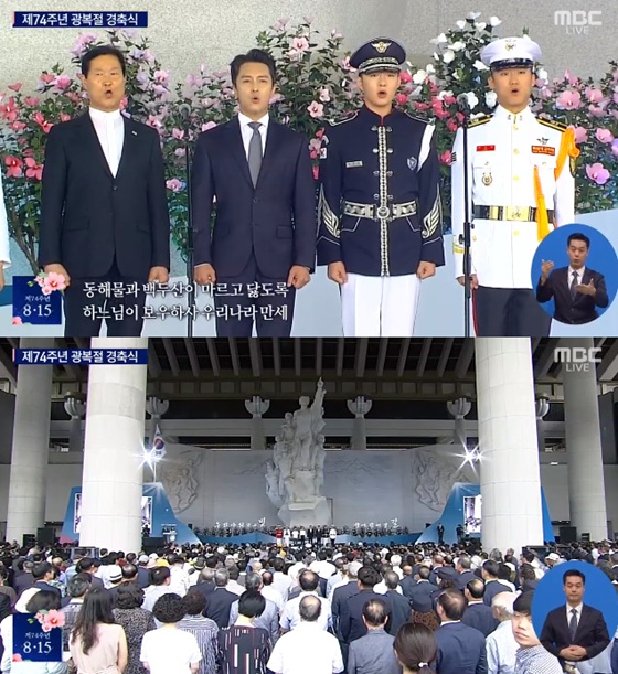 신화 김동완, 비투비 이창섭, 샤이니 키가 제74주년 광복절 경축식에서 애국가를 제창했다.
