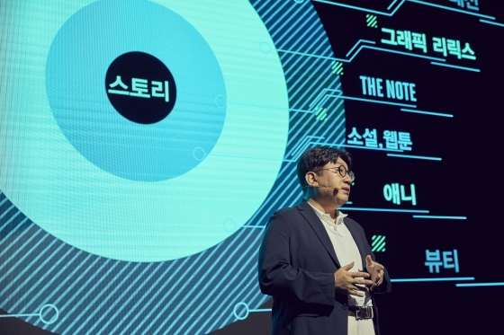 이후 윤석준 대표의 고객 경험 개선 확장 설명과 서우석 대표의 새로운 플랫폼의 혁신과 관련한 이야기에 이어 다시 무대에 선 방시혁 대표의 또 다른 이야기는 바로 '세계관'이었다.