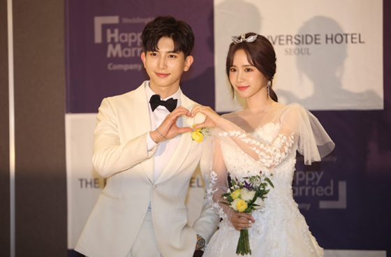기섭과 정유나는 24일 서울 서초구 잠원동 더리버사이드 호텔에서 결혼과 함께 기자회견을 열었다.