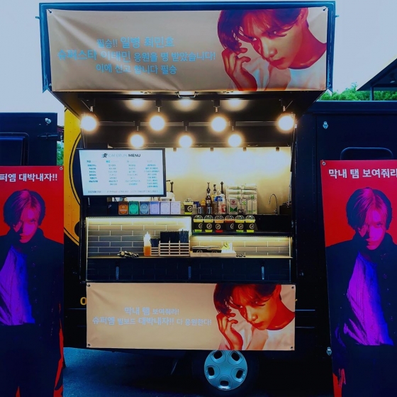 그룹 샤이니 멤버 태민이 민호가 선물한 커피차를 인증했다.