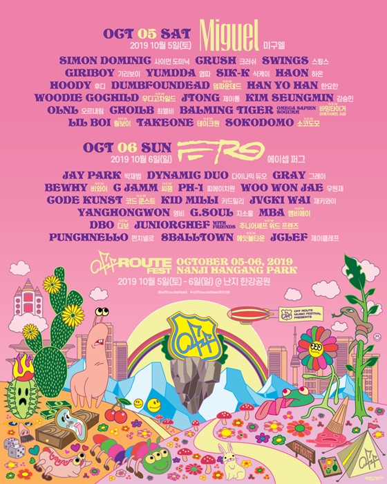 이틀간 총 39팀의 공연이 펼쳐질 '오프 루트 페스트 2019’는 10월 5일부터 6일까지 난지한강공원에서 개최된다. 현재 멜론 티켓, 인터파크, 위메프를 통해 예매가 가능하다.