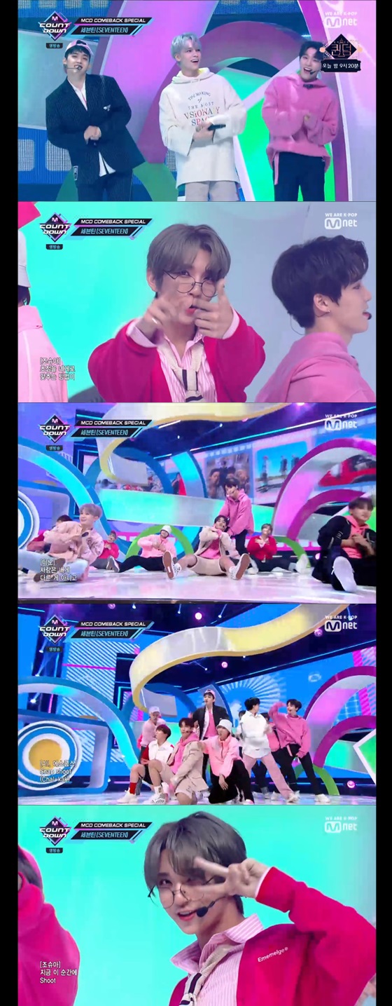 19일 오후 방송된 케이블 채널 Mnet 음악 순위 프로그램 '엠 카운트다운'에서는 1년 10개월 만에 정규앨범으로 돌아온 세븐틴의 컴백 무대가 최초로 공개됐다.