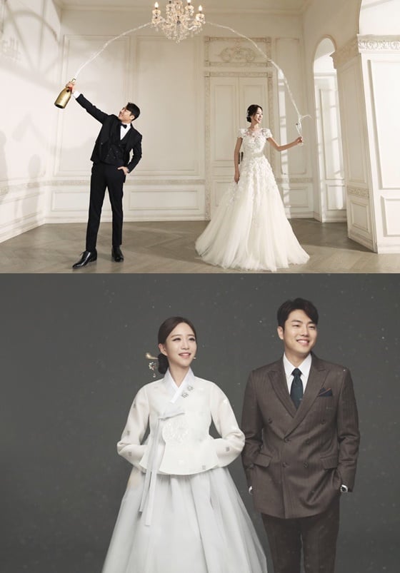 공개된 웨딩 화보 속 두 사람은 행복한 미소와 함께 선남선녀의 비주얼을 뽐내며 아름다운 분위기를 연출했다.