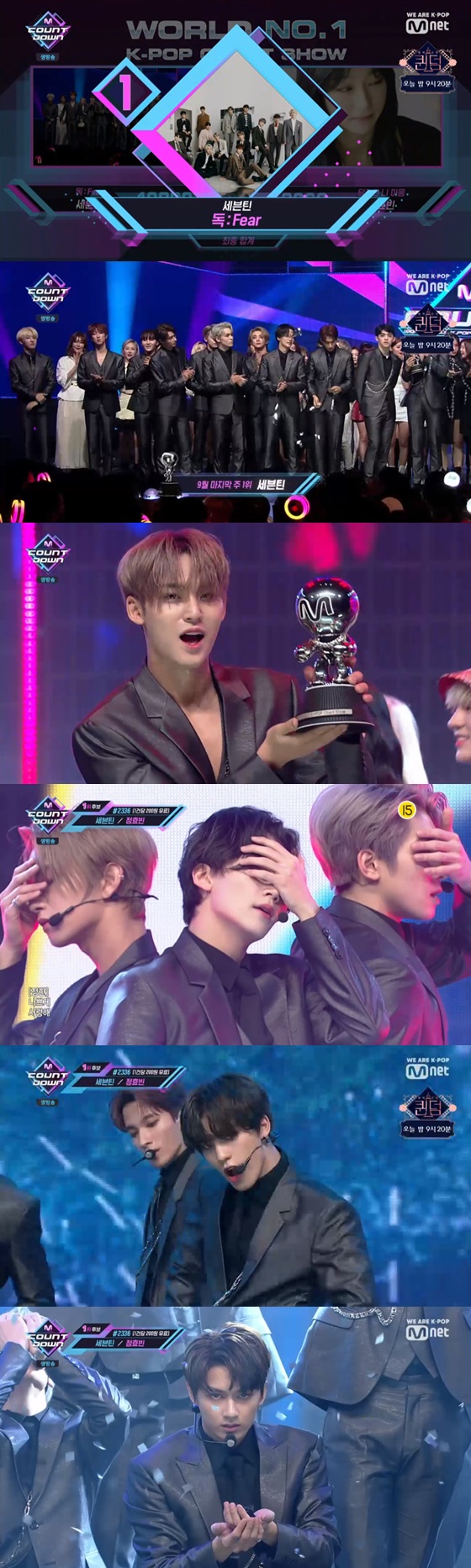 그룹 세븐틴이 가수 정효빈을 큰 격차의 점수로 제치고 '엠카운트다운' 9월 마지막주 1위에 올랐다.