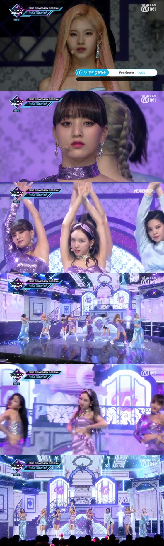 그룹 트와이스가 '엠카운트다운'에서 신곡 'Feel Special'(필 스페셜) 무대를 최초 공개했다.