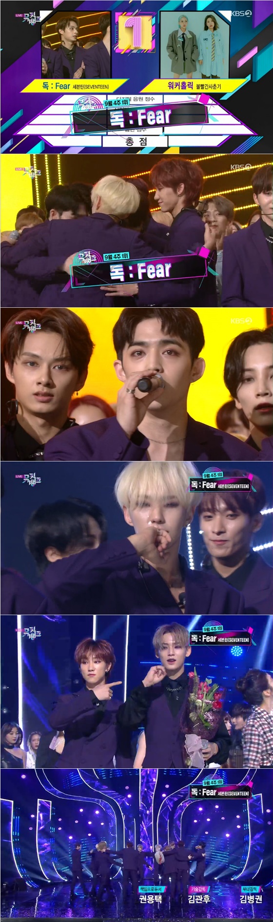 '뮤직뱅크' 세븐틴이 곡 '독: Fear'로 1위를 차지했다.