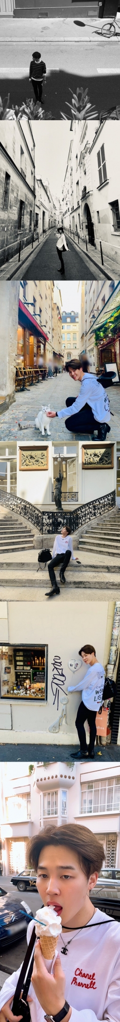 공개된 사진 속 지민은 장기 휴가 중 여러 나라를 여행하며 찍은 인증샷이 담겼다. 특히 지민은 여유로운 분위기 속 휴가를 즐기고 있는 모습으로 시선을 사로잡는다.
