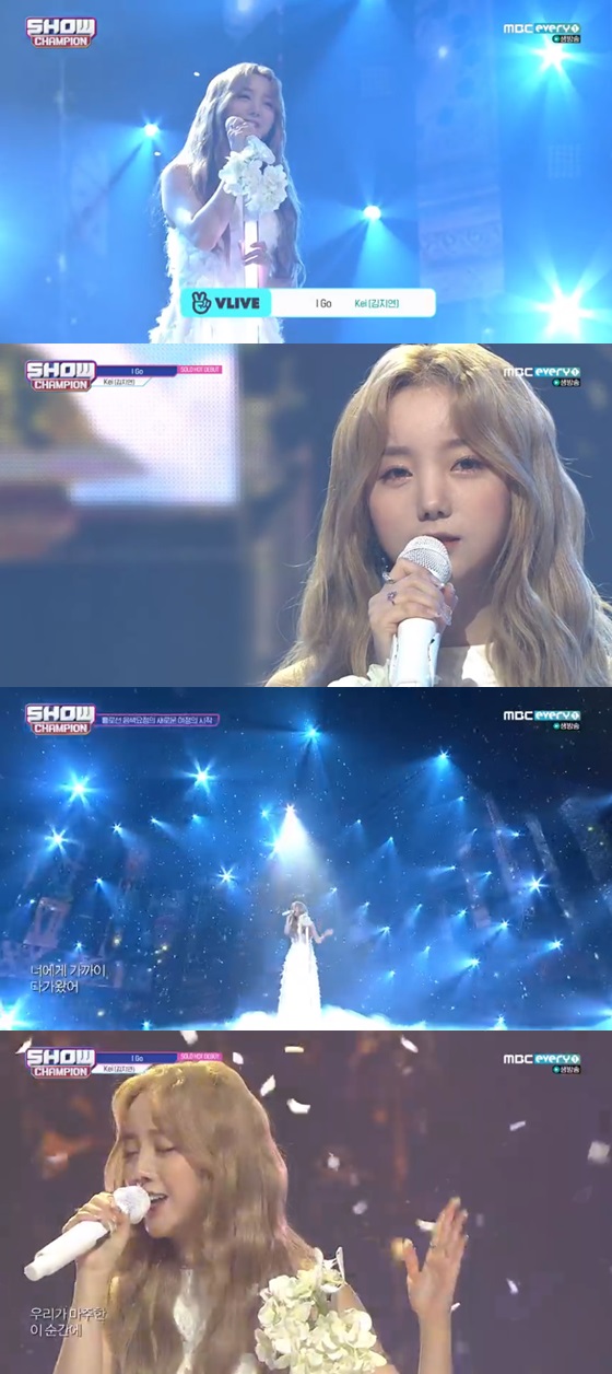 16일 오후 방송된 MBC 에브리원 음악 순위 프로그램 '쇼! 챔피언'에서는 러블리즈의 첫 솔로 주자 김지연(케이)이 신곡 'I Go(아이 고)'를 부르는 모습이 그려졌다.